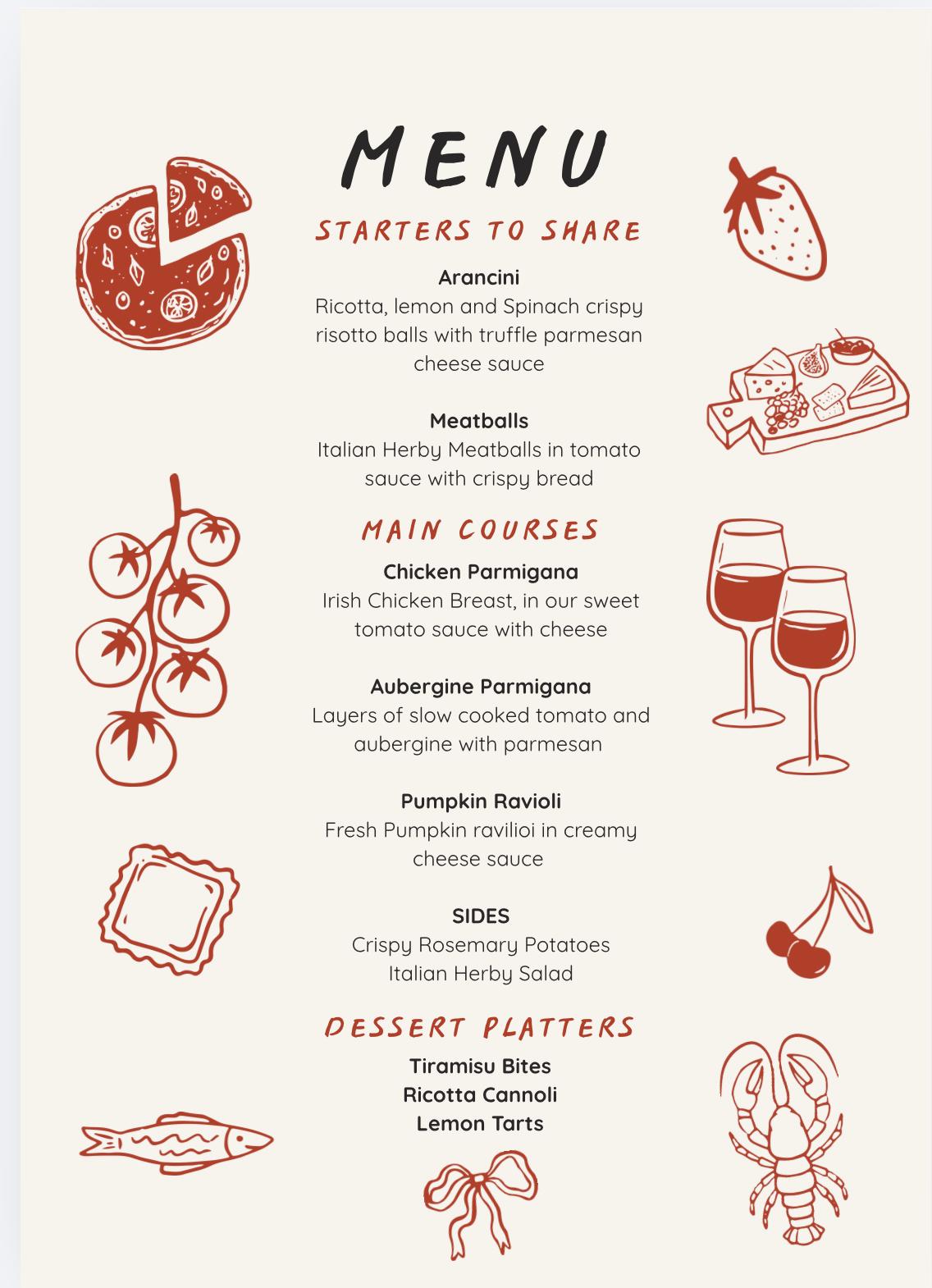 For €40 per person, guests will enjoy a delicious multi-course dining experience featuring shared starters, hearty Italian mains, and indulgent desserts.