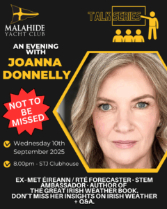 Malahide Yacht Club is delighted to launch our Autumn series of talks with a very special guest: Joanne Donnelly, one of Ireland’s most familiar and respected weather forecasters, on Wednesday
