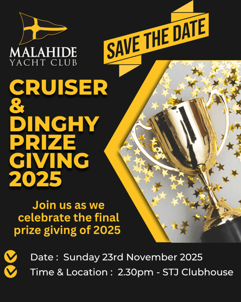 Join us in St. James Terrace Clubhouse at 2.30pm sunday 23rd November 2025 as we celebrate the exploits of our Cruiser and Dinghy sailors. All welcome !